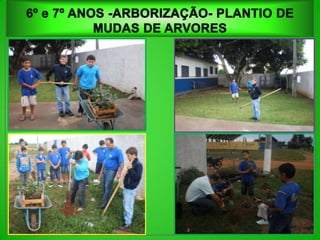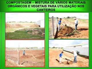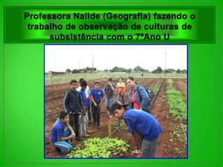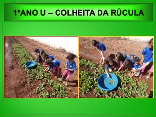 O documento descreve o projeto horta da Escola Polo Municipal Jardim Ivone, que ensina estudantes sobre agricultura orgânica e a importância de uma alimentação saudável. O projeto envolve atividades como preparação de canteiros, irrigação, transplante e colheita de hortaliças cultivadas, que são usadas na merenda escolar.