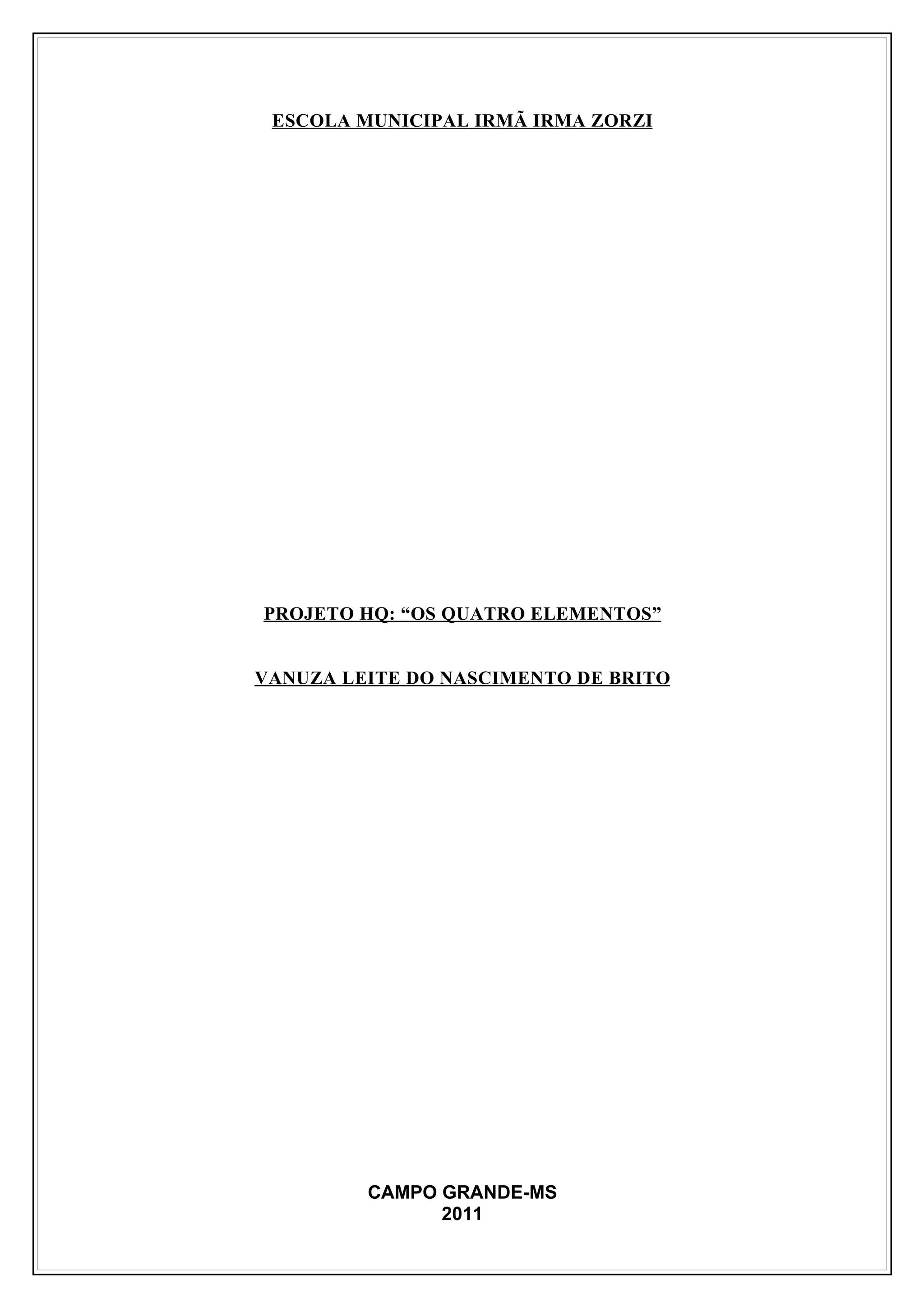 O documento descreve um projeto desenvolvido na Escola Municipal Irmã Irma Zorzi para incentivar a leitura e produção de texto em alunos do 3o ano do ensino fundamental através da criação e leitura de histórias em quadrinhos. O projeto incluiu atividades como assistir vídeos de HQs, ler gibis, produzir histórias no computador e um almanaque com as produções dos alunos.
