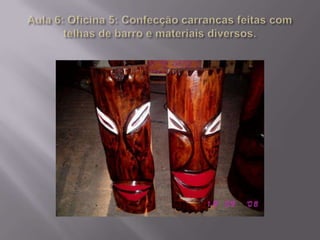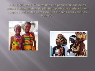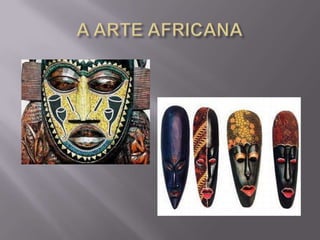 O documento descreve um projeto de 4 semanas sobre arte africana para alunos do 4o ano do ensino fundamental. O projeto tem como objetivos ensinar sobre a história e cultura afro-brasileira de acordo com leis federais, além de desenvolver atividades artísticas inspiradas na arte africana e uma exposição final."