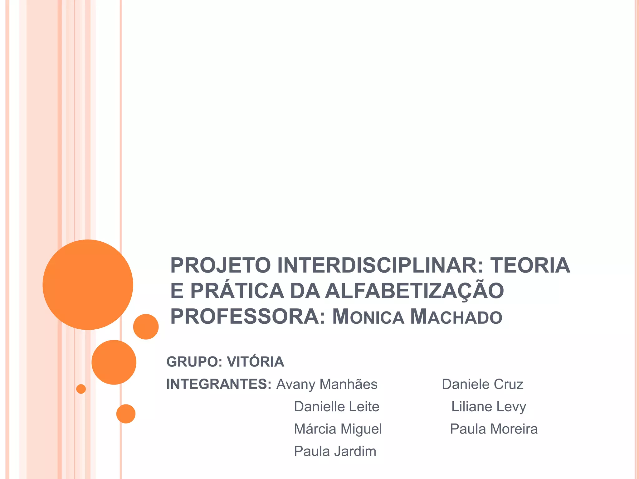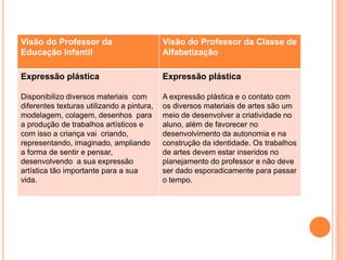 O documento descreve um projeto interdisciplinar sobre alfabetização realizado por um grupo de estudantes. Ele analisa como a construção da linguagem ocorre na educação infantil e nas classes de alfabetização, identificando pontos convergentes entre os dois níveis. Também discute como as escolas abordam a temática da violência desde a educação infantil.