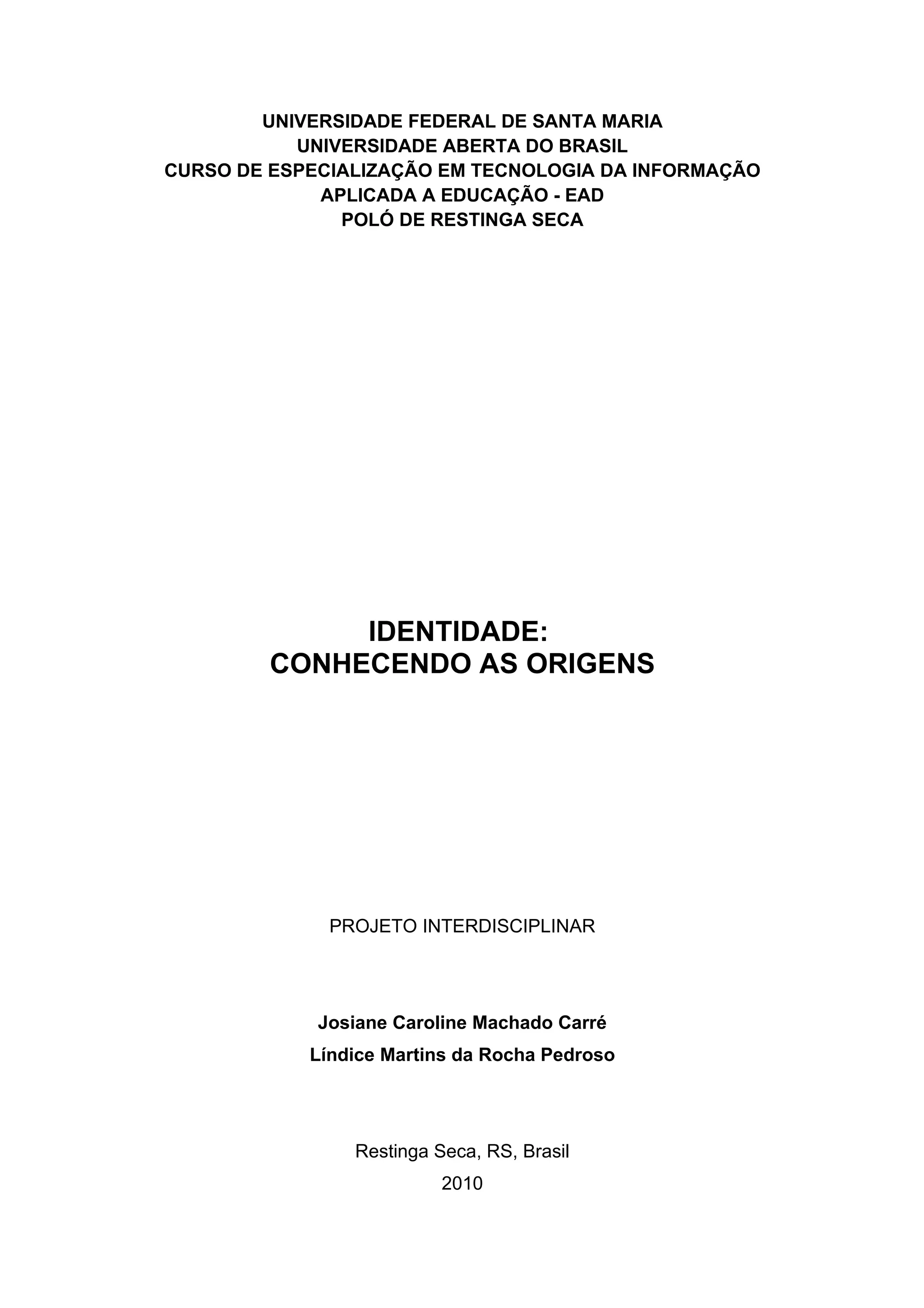 Este documento descreve um projeto interdisciplinar desenvolvido por duas alunas de um curso de especialização sobre a origem dos sobrenomes dos estudantes. O projeto visa promover a identidade individual e coletiva dos alunos através de pesquisas sobre suas origens familiares com o auxílio de recursos tecnológicos e questionários respondidos pelos parentes. As informações coletadas serão analisadas e apresentadas em grupo para que os alunos reflitam sobre as semelhanças e diferenças entre as origens.