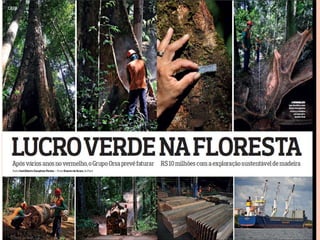 O documento descreve a história do Projeto Jari, um projeto agroindustrial iniciado na Amazônia brasileira em 1967 com o objetivo de produzir arroz, celulose e criar búfalos. O projeto trouxe desenvolvimento para a região mas também causou grande desmatamento e problemas sociais e ambientais devido a falta de planejamento adequado. Atualmente, o Projeto Jari é controlado pelo Grupo Orsa e busca a sustentabilidade por meio da certificação florestal.