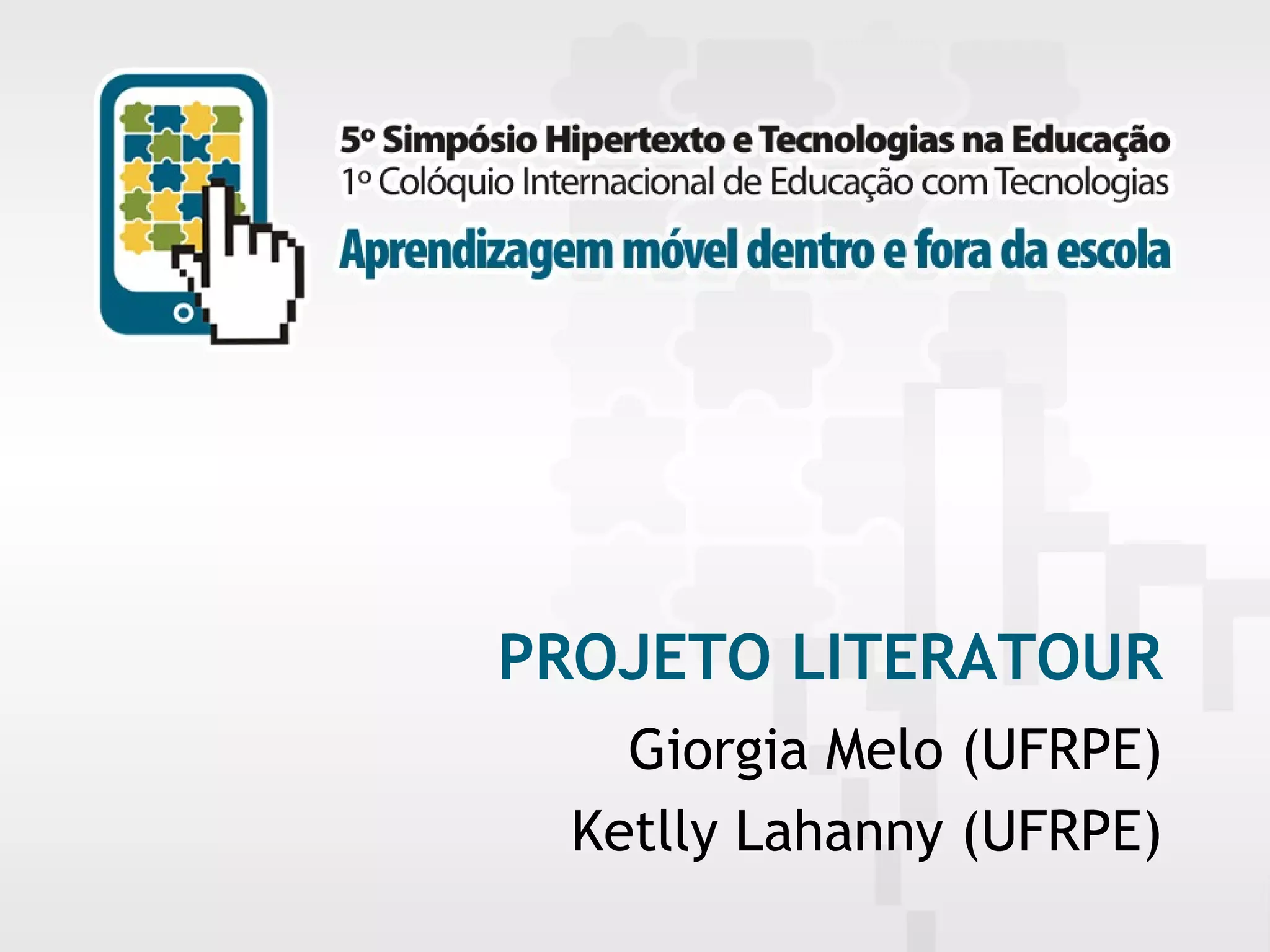 O projeto Literatour tem como objetivo incentivar a leitura da literatura através de recursos tecnológicos como bibliotecas virtuais e blogs. Sua metodologia inclui a criação de um site com conteúdos literários e atividades com alunos para despertar o interesse pela leitura. Os alunos responderam positivamente e o projeto atingiu com sucesso seus objetivos de incentivar a leitura.