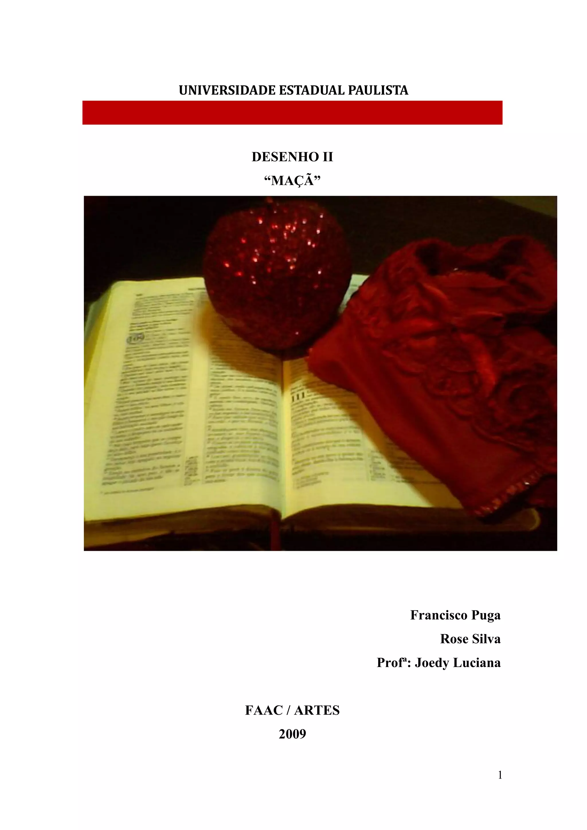 Este documento descreve o processo de criação e produção de uma ilustração de uma maçã manipulada para parecer um objeto de aço cromado. Detalha as pesquisas realizadas e as técnicas utilizadas para transformar uma maçã real em uma ilusão de um objeto metálico em menos de 5 minutos. Também analisa os diversos símbolos e significados associados à maçã ao longo da história e em diferentes culturas.