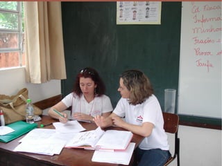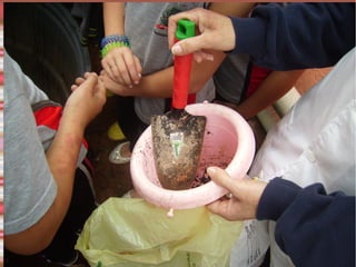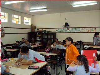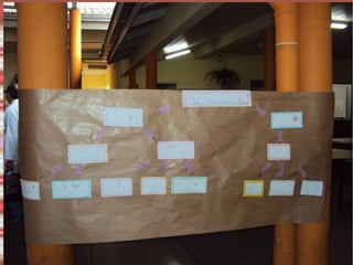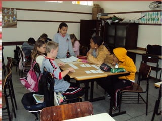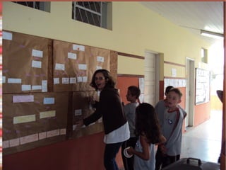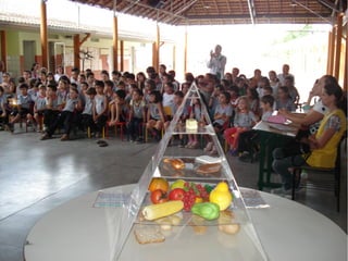 O documento descreve um projeto de alimentação saudável realizado por uma escola municipal em parceria com um posto de saúde. O objetivo era conscientizar os alunos sobre a importância de hábitos alimentares saudáveis através de atividades como estudos sobre a pirâmide alimentar e experimentos com bucho bovino. O projeto envolveu pesquisas, mapas conceituais e uma exposição final para a comunidade.