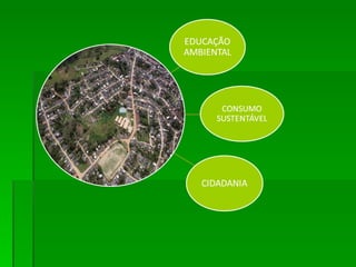 Este documento descreve um projeto ambiental em uma escola secundária com o objetivo de melhorar a conscientização ambiental entre os alunos. O projeto abordará os temas da água, lixo e energia ao longo de três anos letivos utilizando oficinas, palestras, pesquisas e visitas de campo. Os alunos farão apresentações, gráficos e pesquisas sobre esses temas. O desempenho dos alunos será avaliado ao longo do projeto.