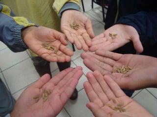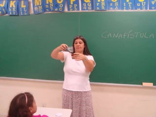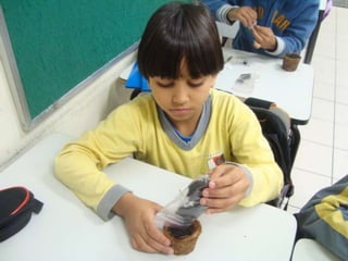 Os alunos do 2o ano A plantaram sementes de Canafístula em sala de aula no Dia do Meio Ambiente. Eles colocaram as sementes e terra em caixas de reciclagem da merenda escolar, que foram pintadas e reutilizadas para recolher o lixo reciclado.