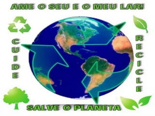 O documento discute a importância da reciclagem para preservar o meio ambiente e conservar os recursos naturais. A reciclagem pode ajudar a acabar com enchentes e manter a camada de ozônio intacta, prevenindo danos à saúde humana. O texto pede que as pessoas abracem a ideia da reciclagem e façam sua parte para tornar o planeta mais limpo e sustentável.