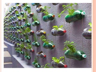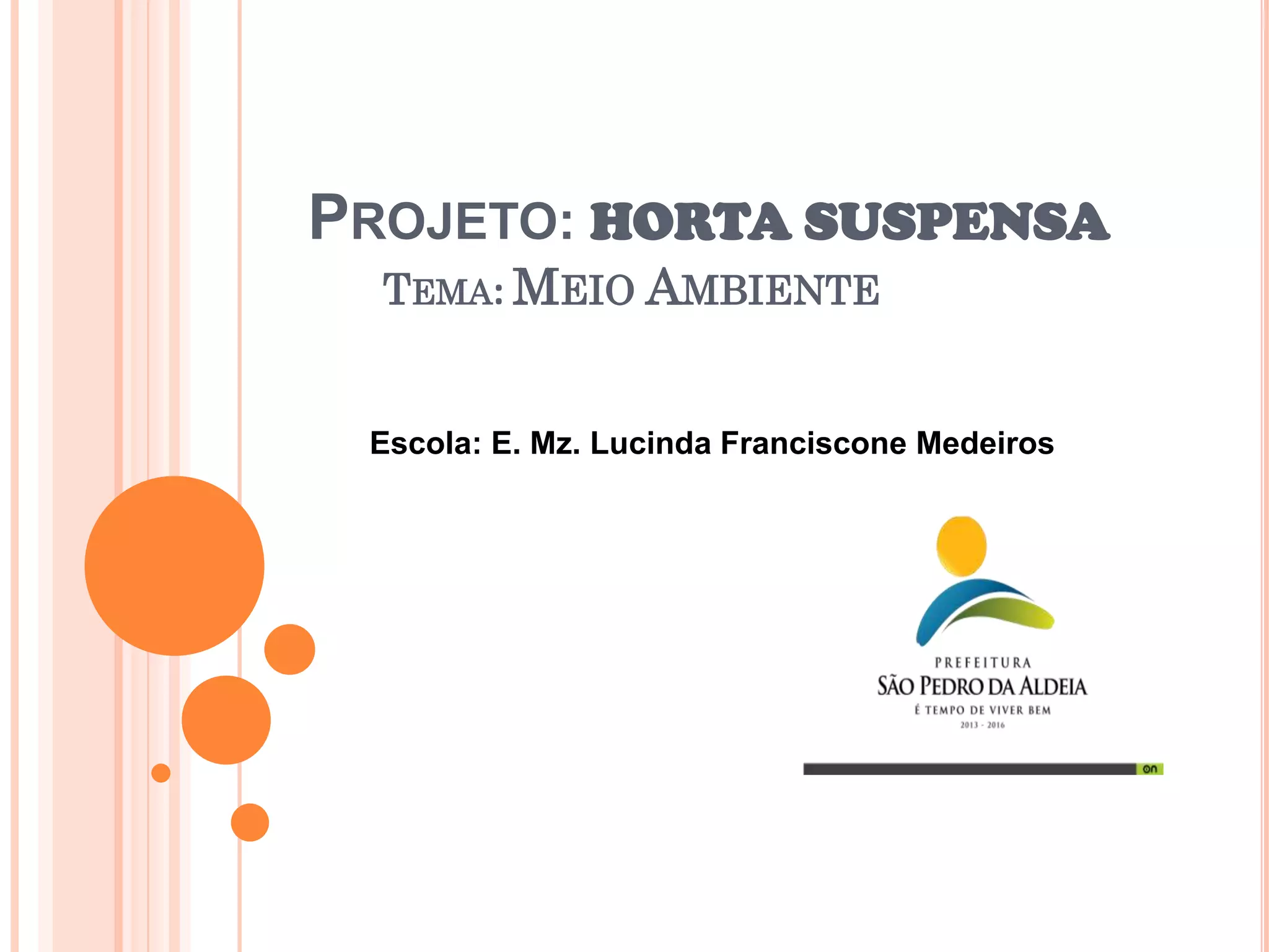O documento descreve um projeto de horta suspensa em uma escola para promover educação ambiental e alimentar. O objetivo é estudar questões ambientais e nutricionais, estimular uma alimentação saudável cultivando produtos orgânicos, e intercambiar conhecimentos. Alunos do 6o ao 9o ano irão diagnosticar conhecimentos, preparar vasos, plantar mudas, e realizar pesquisas sobre solo, nutrição e receitas.