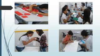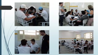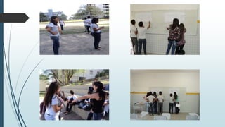 Este documento descreve um projeto realizado com alunos do ensino médio para ensinar conceitos matemáticos por meio da construção de uma maquete de casa. O projeto incluiu desenhar plantas baixas, medir uma casa real, construir as maquetes usando isopor ou cartolina, e aplicar listas de exercícios para avaliar a aprendizagem dos alunos. Os resultados mostraram uma melhora no desempenho dos alunos na segunda lista de exercícios aplicada após a atividade prática.