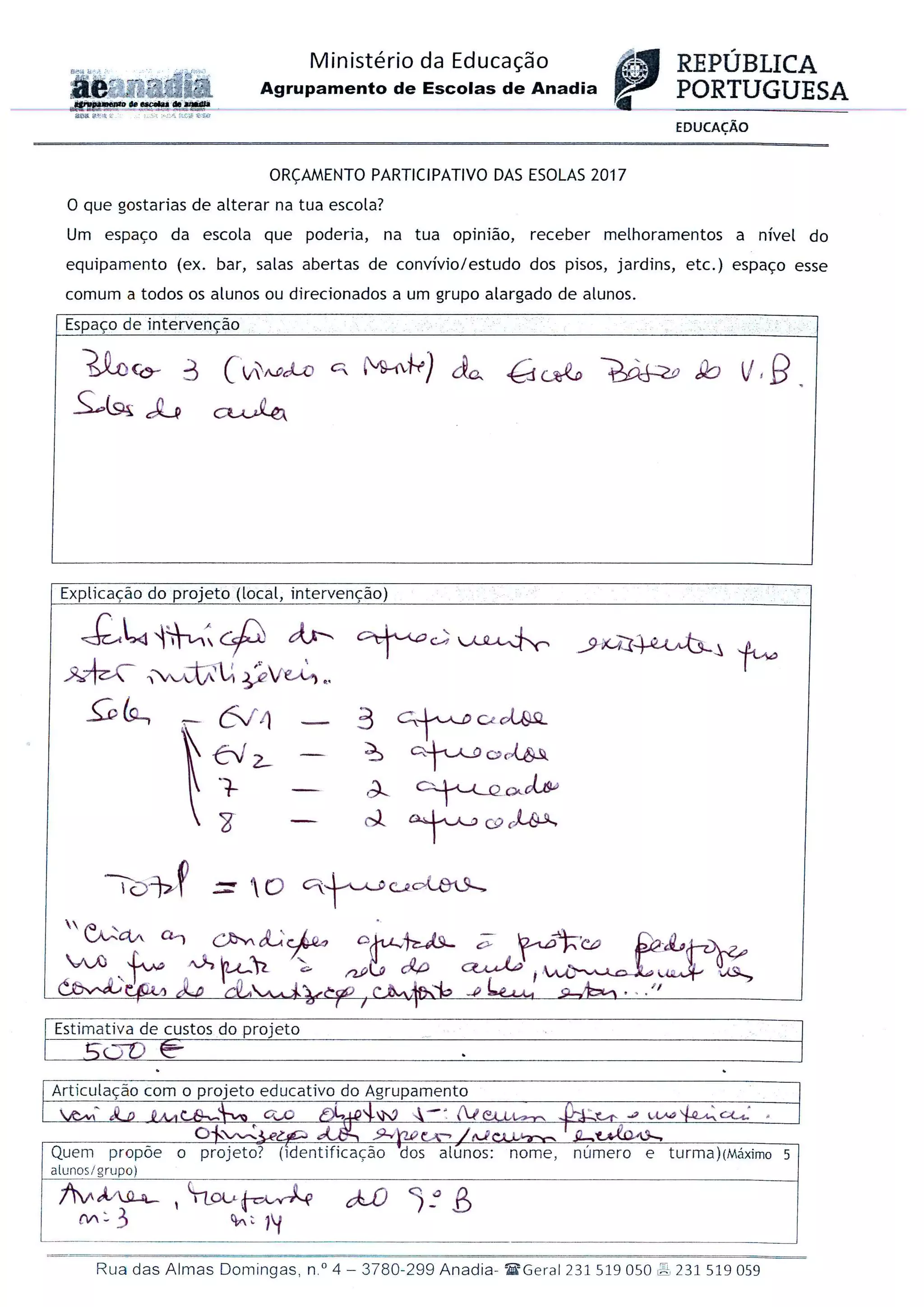 Projeto vencedor do OPE da Escola Básica de Vilarinho do Bairro, do Agrupamento de Escolas de Anadia