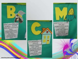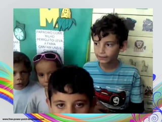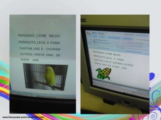 Este documento descreve um plano de aula para ensinar estudantes do 1o ano do ensino fundamental a usar tecnologias de informação e comunicação. As atividades incluem falar parlendas em forma de música e gravá-las em vídeo, digitar parlendas no computador, e procurar imagens na internet para ilustrar as parlendas. A aula será conduzida em sala de aula e na sala de informática da escola.
