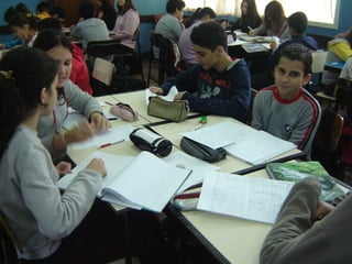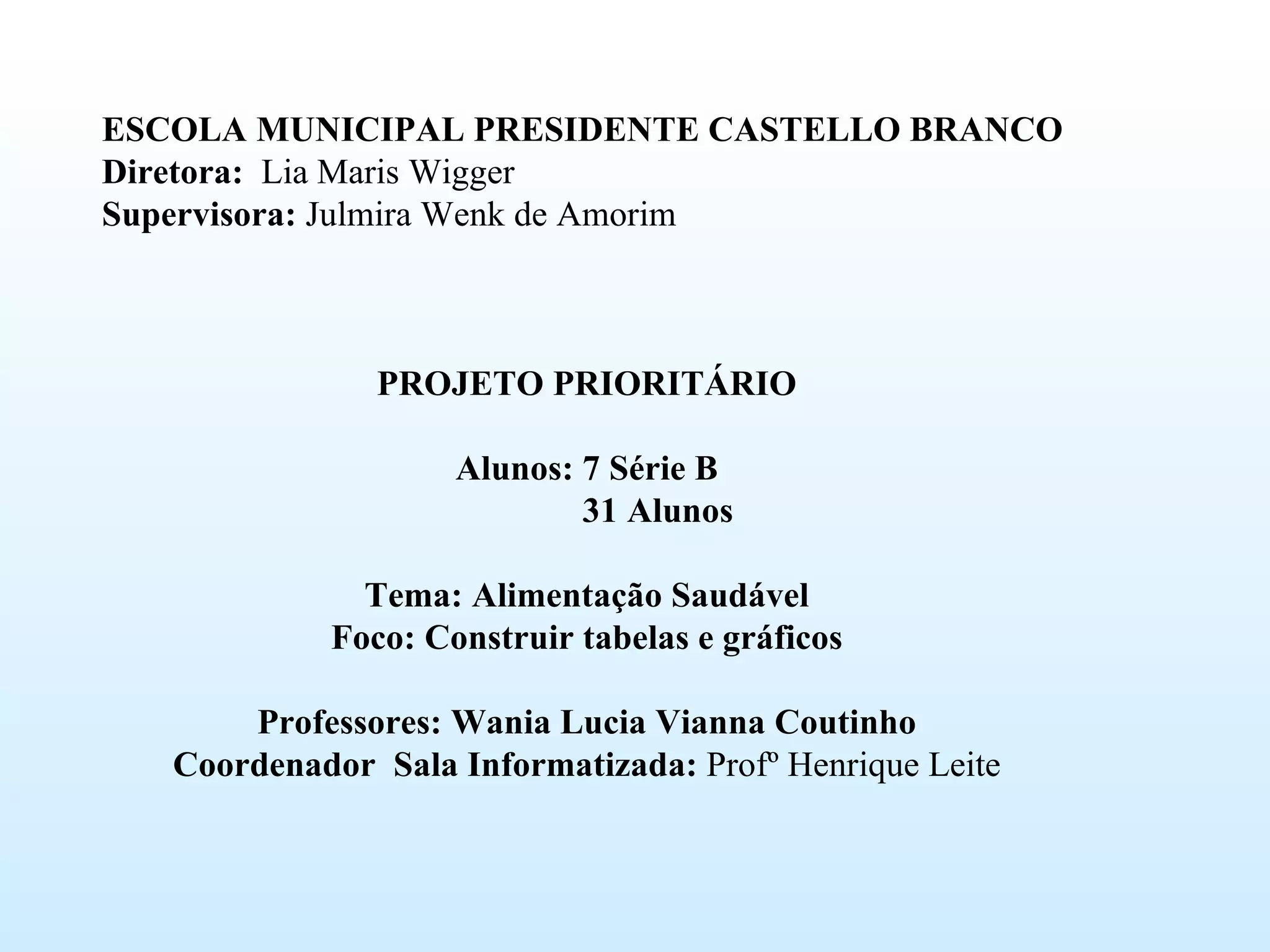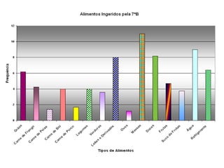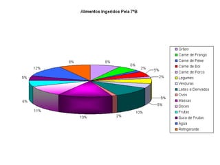 Os alunos da 7a série coletaram dados sobre os tipos de alimentos consumidos por uma semana e elaboraram gráficos e tabelas. Eles se dividiram em grupos para pesquisar sobre obesidade, alimentação não saudável, carências nutricionais e reaproveitamento de alimentos. Os grupos visitaram uma empresa orgânica e elaboraram relatórios. Um nutricionista palestrou para os alunos, que produziram panfletos e publicaram os trabalhos online.