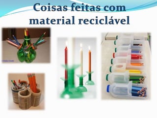 O documento descreve um projeto de conscientização sobre reciclagem e redução de lixo em uma escola. A equipe do projeto abordará a necessidade de mudança de valores e atitudes para inserir tais práticas no cotidiano dos alunos, utilizando metodologias interdisciplinares. As disciplinas envolvidas desenvolverão atividades para sensibilizar os estudantes sobre os problemas causados pelo lixo e promover a reutilização e reciclagem.