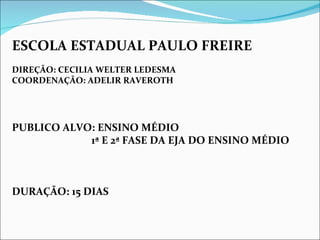 Este documento descreve um projeto chamado "Resgatando Raízes" implementado em uma escola para incentivar estudantes a valorizar suas raízes culturais através de músicas, danças e tradições locais. O projeto teve como objetivo geral resgatar e preservar a cultura popular local e objetivos específicos como incentivar manifestações culturais, conhecer talentos musicais locais e pratos típicos. Foi desenvolvido ao longo de 15 dias e concluído com uma exposição de trabalhos dos alunos e uma