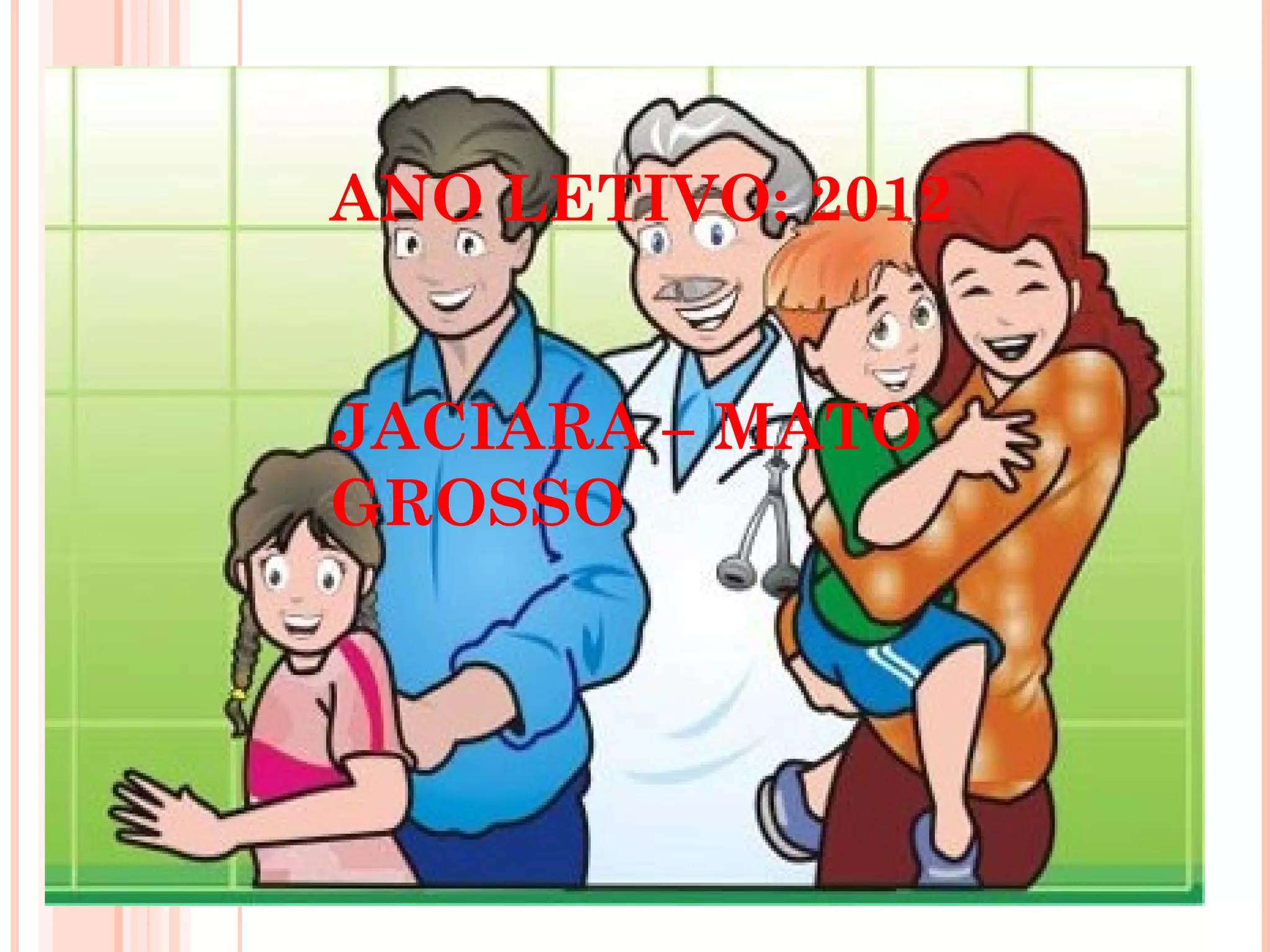O documento resume um projeto desenvolvido por professoras do 1o ano do ensino fundamental em Jaciara, Mato Grosso, em 2012. O projeto teve como objetivo principal conscientizar os alunos sobre a importância da saúde, promovendo bons hábitos de higiene através de atividades lúdicas e visitas a locais de saúde da região. As professoras utilizaram diversos recursos e realizaram avaliações contínuas para verificar o sucesso do projeto em atingir seus objetivos.