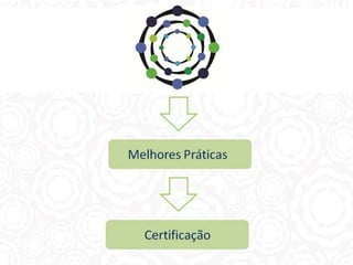 O documento descreve os princípios de sustentabilidade de uma organização, incluindo o desenvolvimento de conexões entre públicos, a identificação de necessidades em todos os níveis e a oferta de soluções sustentáveis em diversas áreas por meio de consultoria, gestão e execução de projetos.