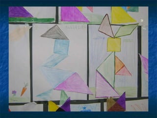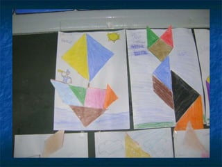 Este projeto ensina conceitos geométricos de forma prática usando tangrams. Os alunos constroem seus próprios tangrams para identificar as figuras geométricas que os compõem e como se relacionam. Eles também constroem tangrams no computador para reforçar os conceitos aprendidos. A avaliação inclui relatos digitais dos alunos e sua habilidade em montar tangrams fisicamente e no computador.