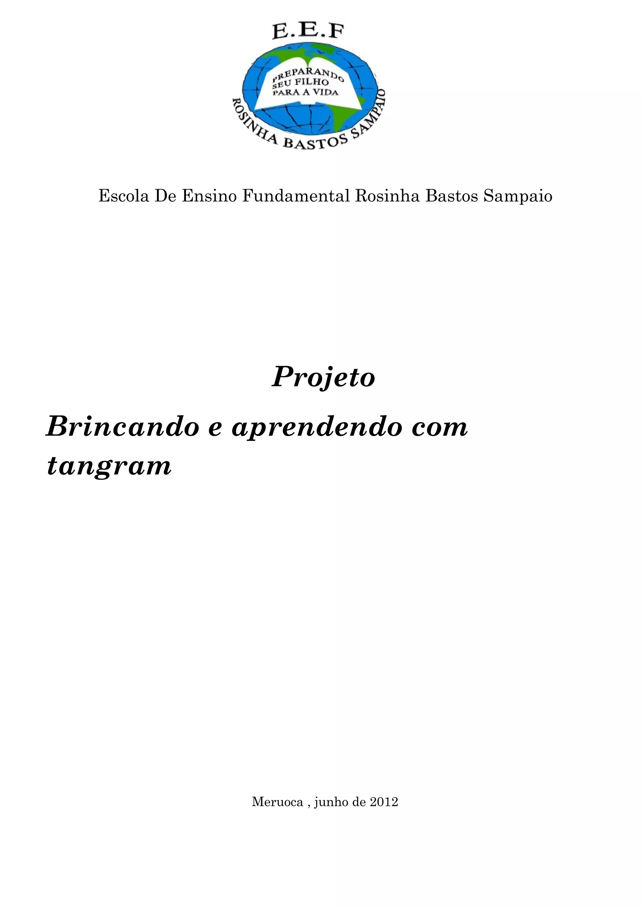 O documento descreve um projeto de ensino de matemática utilizando o jogo tangram com alunos do 6o ao 9o ano do ensino fundamental. O projeto tem como objetivos desenvolver habilidades espaciais e geométricas dos alunos de forma lúdica. Ele será implementado ao longo de um mês letivo e inclui atividades como montar figuras com as peças do tangram, criar histórias ilustradas e avaliação dos conceitos aprendidos.