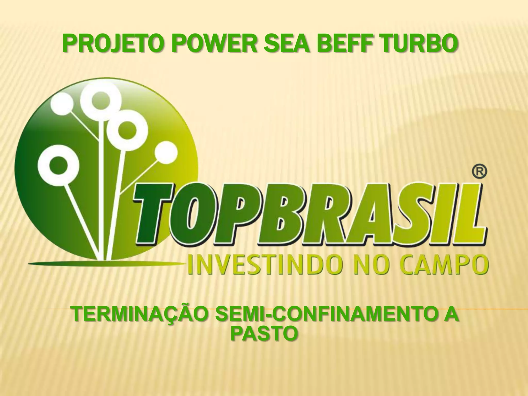 O documento descreve um projeto de terminação de gado a pasto utilizando o suplemento Power Sea Beef Turbo. O projeto mostrou animais que receberam o suplemento em regime de semi-confinamento a pasto tiveram ganhos de peso 17% maiores, alta conversão alimentar e melhor imunidade. O custo do suplemento para um lote de 500 cabeças foi de R$5.400,00 e gerou um ganho líquido estimado de R$293.970,00 em 60 dias.