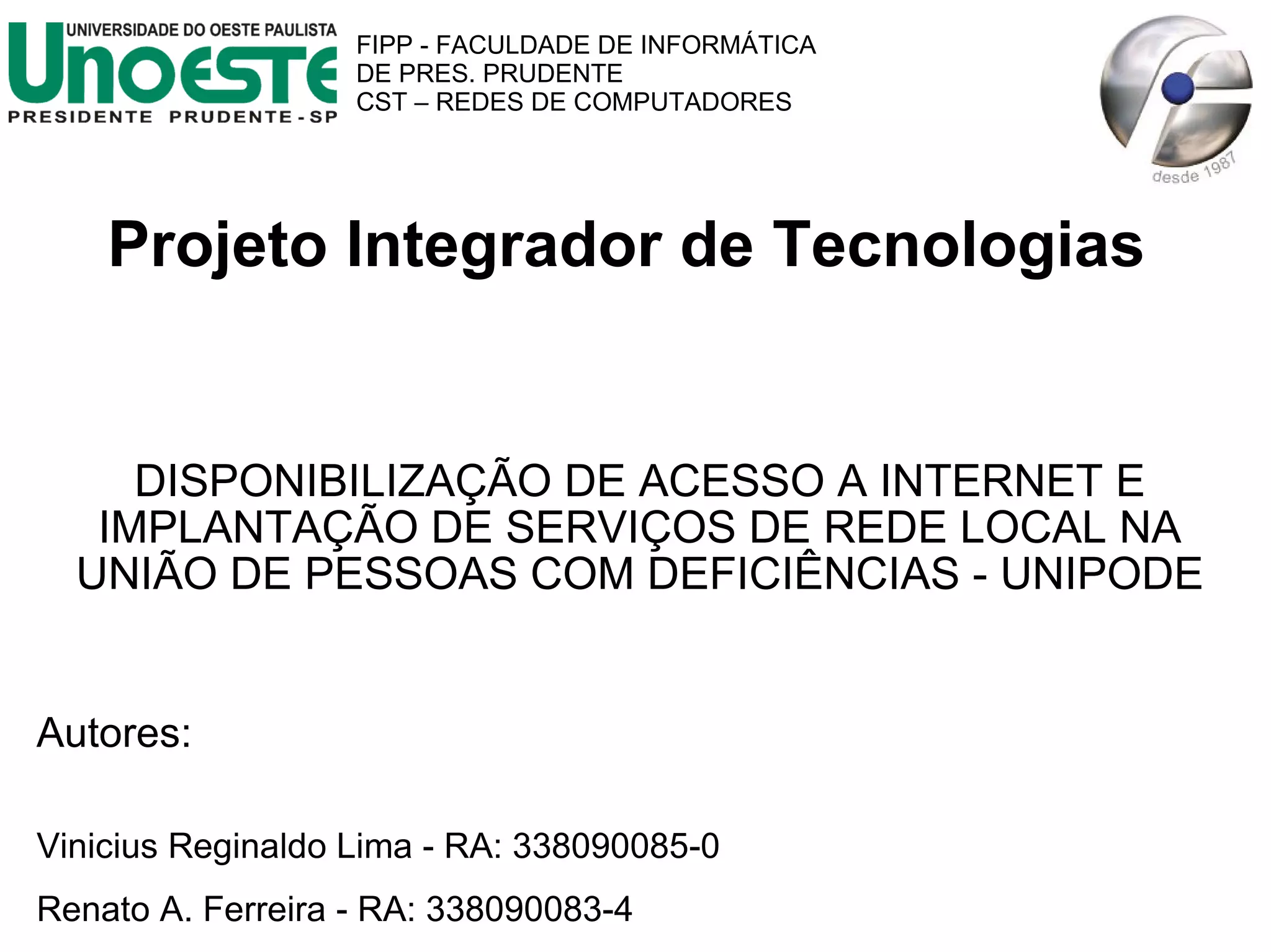 O documento descreve um projeto de implantação de rede local e acesso à internet na União de Pessoas com Deficiências (UNIPODE). O projeto instalou antenas wireless, roteadores, cabos e compartilhamento de arquivos/impressora para permitir a comunicação entre computadores e acesso online. Isso beneficiou a instituição e os alunos ao facilitar o trabalho e estudos.