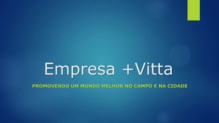 A empresa Vitta desenvolve produtos agrícolas e sofreu uma crise de imagem após contaminação no solo. Eles elaboraram um plano estratégico envolvendo gamificação, intervenção urbana e recuperação de áreas degradadas. O plano tático inclui parcerias com games, aproximar o digital e rural e capacitar a população. O plano operacional definirá canais como Facebook, Twitter e YouTube para melhorar a percepção pública da importância social da empresa.