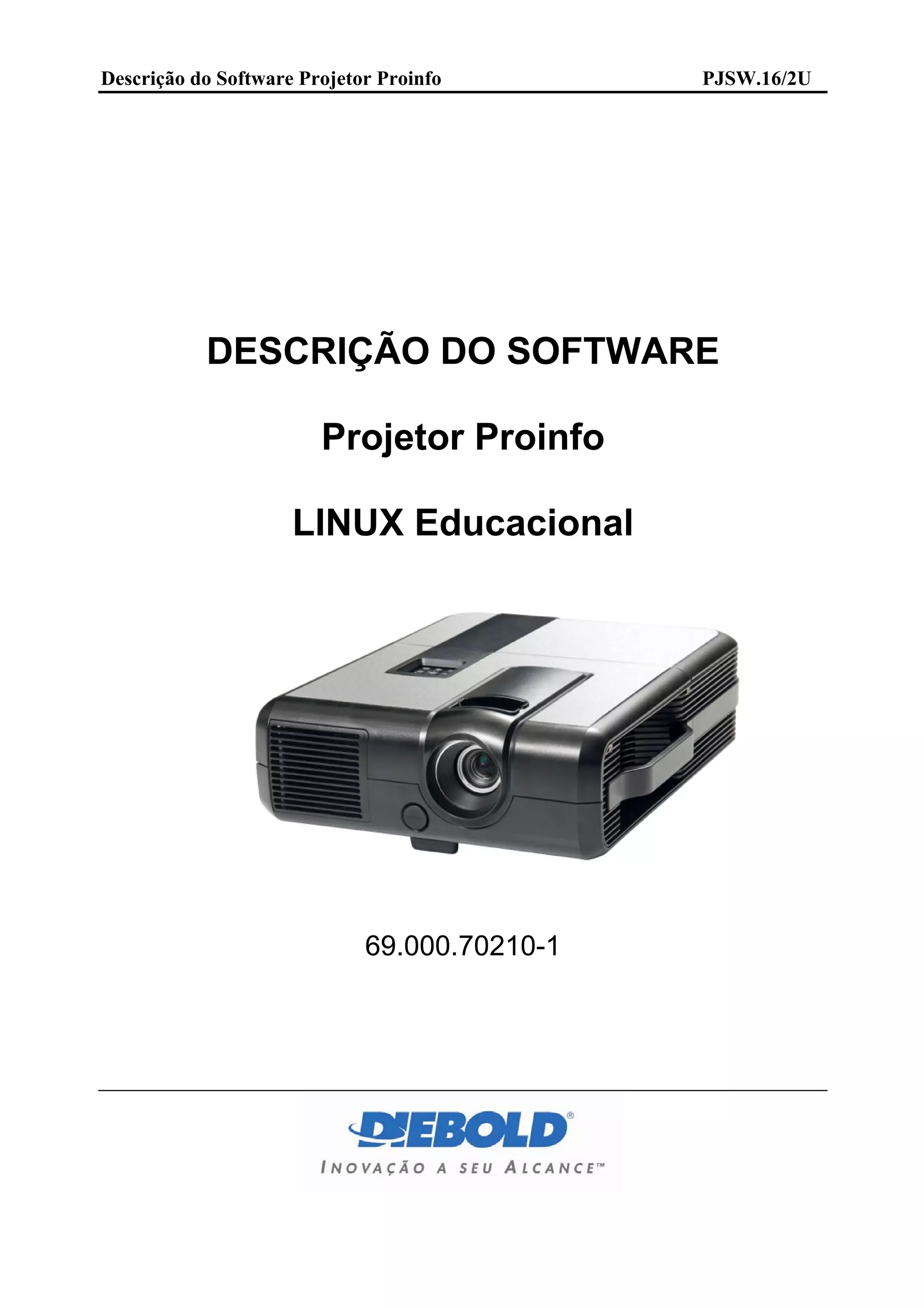 Este documento fornece uma descrição detalhada do software instalado no Projetor Proinfo, incluindo: