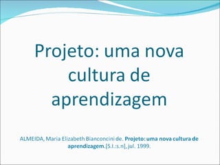 Este documento discute a implementação da pedagogia de projetos como uma estratégia para promover a aprendizagem significativa e autonomia dos alunos. Ele argumenta que os objetivos da educação devem ser desenvolver cidadãos capazes de identificar, avaliar e questionar ao invés de apenas transmitir conteúdo. A pedagogia de projetos envolve os alunos em trabalhos em equipe para aprender pesquisando e resolvendo problemas reais, com o professor atuando como tutor. No entanto, sua adoção exige preparo dos professores e um