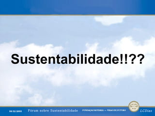 1) O documento discute o conceito de sustentabilidade de projetos segundo a Fundação Rotária, enfatizando a importância dos resultados serem mantidos a longo prazo após o término dos fundos.