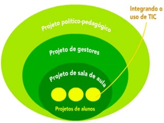 Este documento compara Projetos de Ensino (PE) e Projetos de Aprendizagem (PA), destacando que PAs são definidos pelos alunos com base em suas curiosidades, enquanto PEs são impostos externamente. Também descreve oito etapas para desenvolver um PA, começando pela instigação de perguntas dos alunos e formação de grupos para pesquisar respostas.