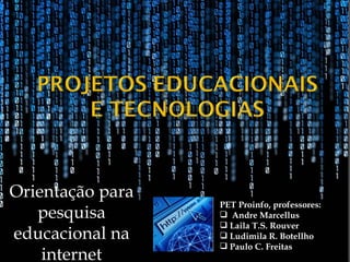 Este documento fornece orientações para professores sobre como conduzir pesquisas educacionais na internet com seus alunos. As turmas participantes realizarão pesquisas em sites confiáveis sobre suas disciplinas e produzirão relatórios semanais sobre o que aprenderam. Os alunos também postarão seus achados em um blog do projeto.