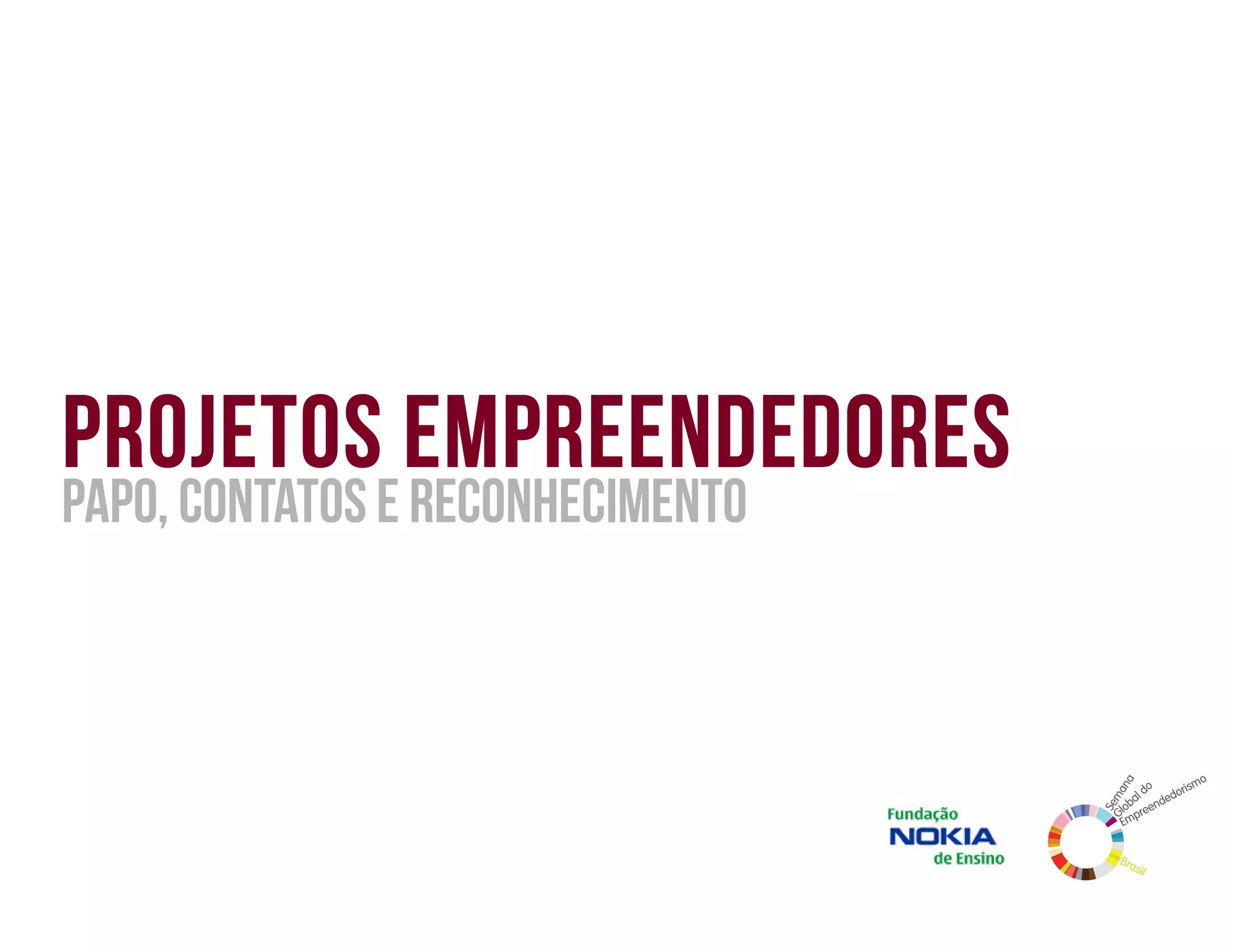 O documento discute projetos empreendedores e fornece informações sobre como pensar em ideias, desenvolvê-las e aplicá-las. Ele lista fontes de inspiração para pensar em casos de sucesso e na vizinhança, a necessidade de energia e objetivos ao se desenvolver um projeto, e formas de espalhar ideias e procurar interessados ao aplicar um projeto, fornecendo também contatos em Manaus para apoiar empreendedores.