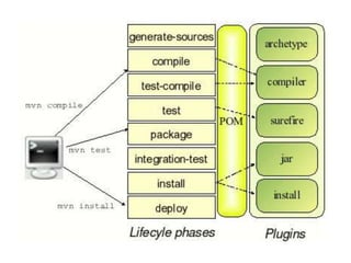 O documento descreve o Maven, uma ferramenta para construir, gerenciar e implantar projetos Java. Ele explica que o Maven torna o processo de construção fácil através de um sistema de construção uniforme (POM), fornece diretrizes para as melhores práticas e permite atualizações fáceis de componentes (dependências).