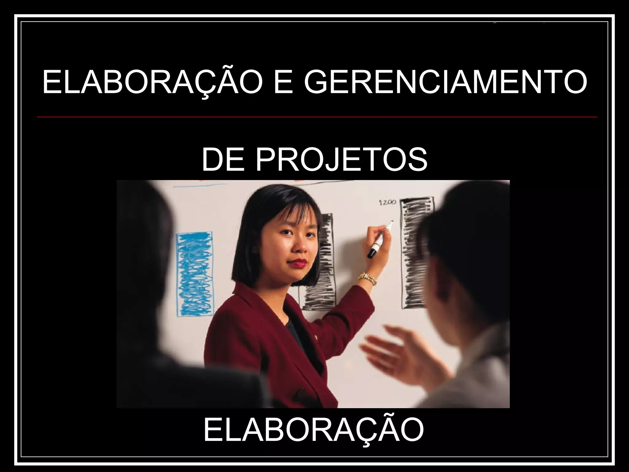 O documento discute a elaboração e gerenciamento de projetos, definindo suas principais partes como: objetivo geral, justificativa, situação geradora, proposta de solução, objetivos específicos, plano de ação e plano de acompanhamento e avaliação. Também apresenta considerações sobre a importância da profissionalização do gerenciamento de projetos para garantir bons resultados.