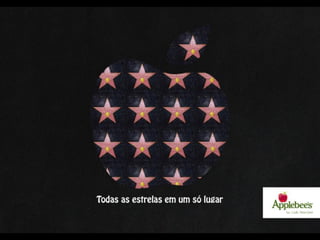 O documento resume as informações sobre a rede de restaurantes Applebee's, incluindo que é a maior rede de casual dining no mundo, com mais de 2.000 lojas em 18 países, tendo chegado ao Brasil em 2004. O público-alvo é a classe A/B entre 20-55 anos, com tíquete médio de R$43.