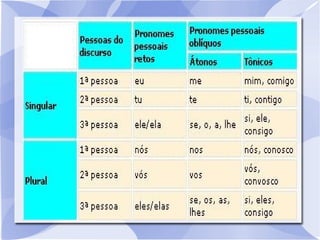 os pronomes apresentam uma forma específica para cada pessoa do