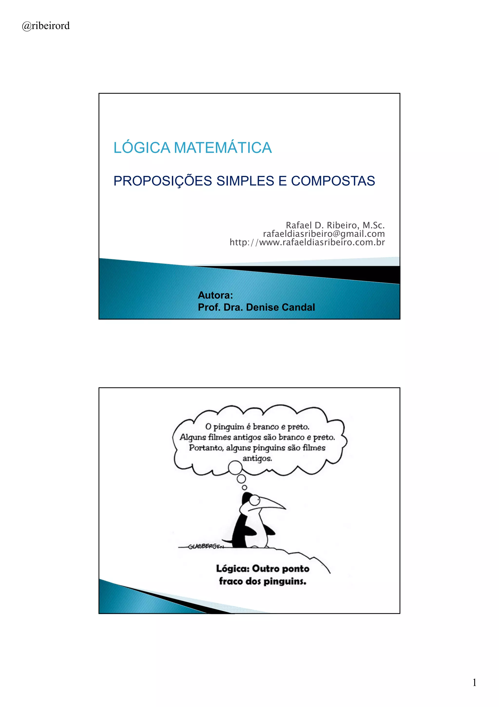 Este documento apresenta um resumo das principais ideias sobre proposições simples e compostas em lógica matemática. Em 3 frases ou menos: