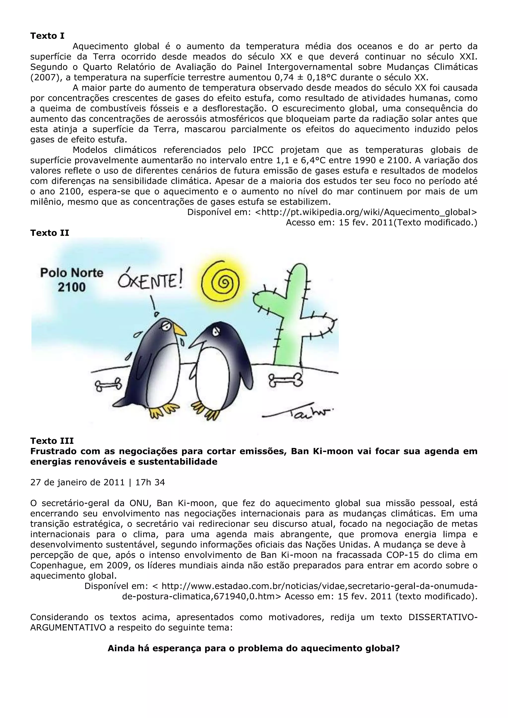 O documento discute o aquecimento global, explicando que é o aumento da temperatura média dos oceanos e da Terra desde meados do século XX, principalmente devido às atividades humanas. Modelos climáticos projetam um aumento de 1,1°C a 6,4°C na temperatura global até 2100. Apesar de a maioria dos estudos focar no ano 2100, o aquecimento deve continuar por mais de mil anos.