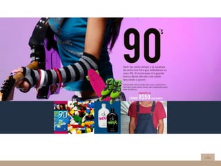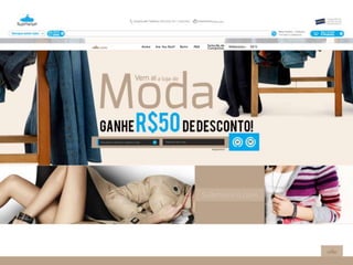 O documento descreve uma página da loja online Submarino, com destaque para o cadastro de novos clientes, estilos de roupas populares e combinações focadas de produtos e estilos. Referências de navegação rápida e objetiva são fornecidas para facilitar a experiência do cliente.