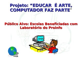 O projeto 'Educar é arte, computador faz parte' visa integrar a tecnologia educacional nas escolas, promovendo a democratização do acesso à tecnologia e comunicação para alunos e professores. Seus objetivos incluem a capacitação de docentes no uso da informática educativa, a criação de um ambiente de aprendizagem colaborativa e a produção de materiais didáticos digitais. A proposta abrange cursos de formação continuada e o uso de recursos tecnológicos, como o Linux Educacional, para enriquecer o ensino e a aprendizagem.