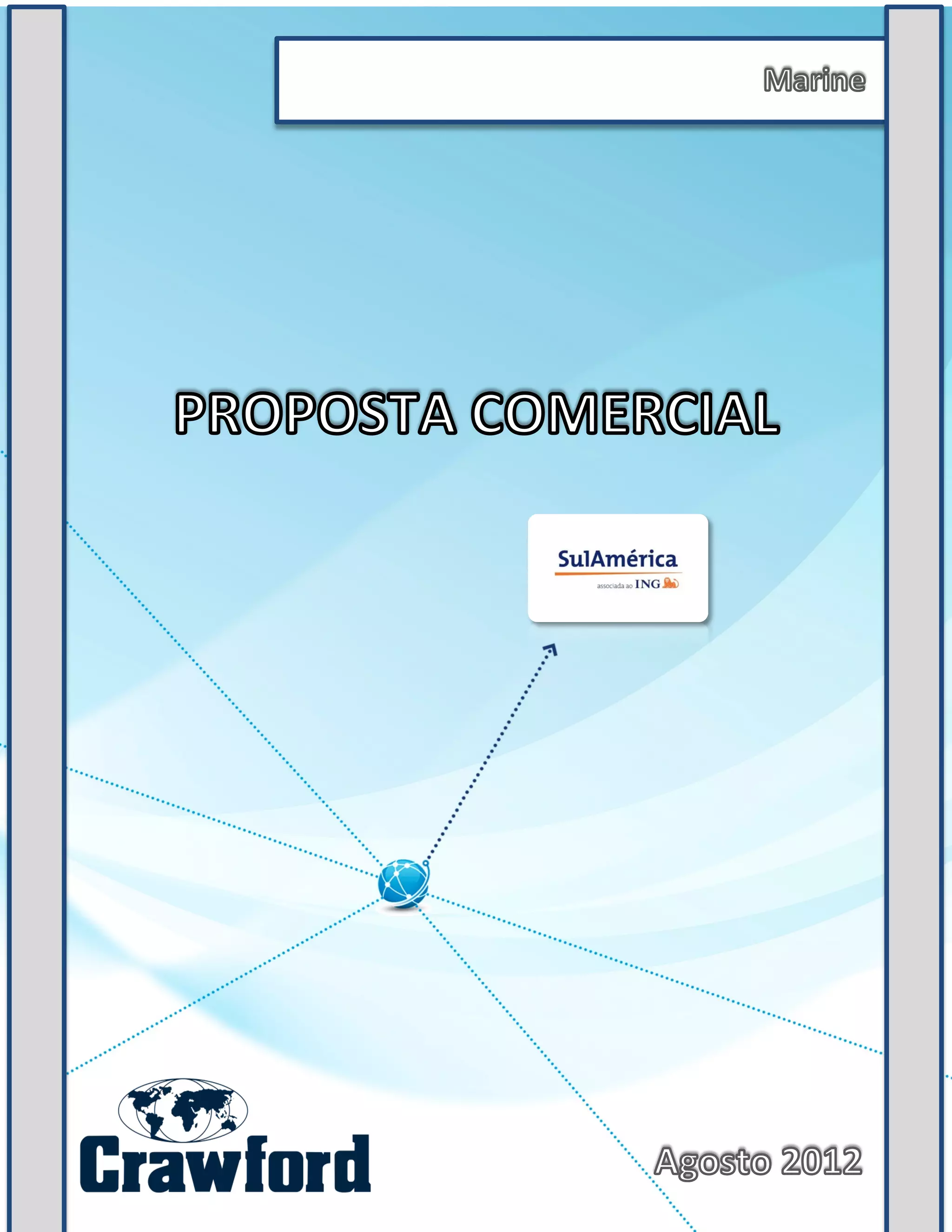 A proposta resume os serviços de assistência a descarga e inspeção de cargas internacionais oferecidos pela Crawford Brasil, incluindo acompanhamento das cargas em todas as etapas do transporte entre países de origem e destino final. A empresa também oferece serviços de importação e exportação no Brasil, com inspeções rápidas nos principais portos e aeroportos para prevenir danos.