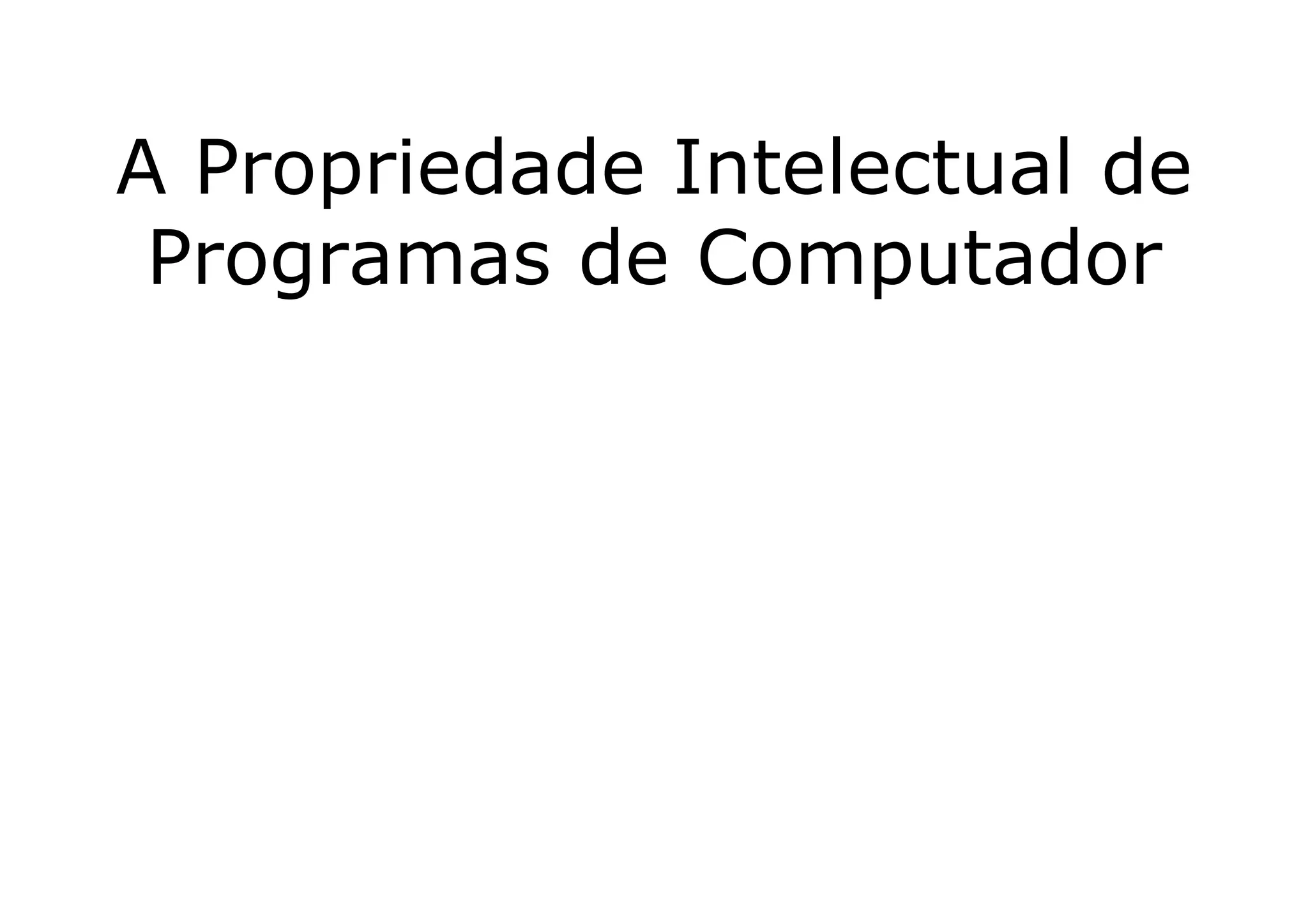 O documento discute a propriedade intelectual de programas de computador. Ele aborda três pontos principais: 1) a propriedade intelectual de programas é regida pelo direito autoral, não pela propriedade industrial; 2) o direito autoral protege a forma de expressão, não a ideia em si; 3) os direitos patrimoniais sobre programas desenvolvidos no trabalho pertencem ao empregador, salvo estipulação contratual em contrário.