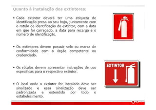 O documento descreve os conceitos básicos de fogo e combate a incêndio, incluindo os elementos que compõem o fogo, classes de incêndio, métodos de extinção e equipamentos como extintores.