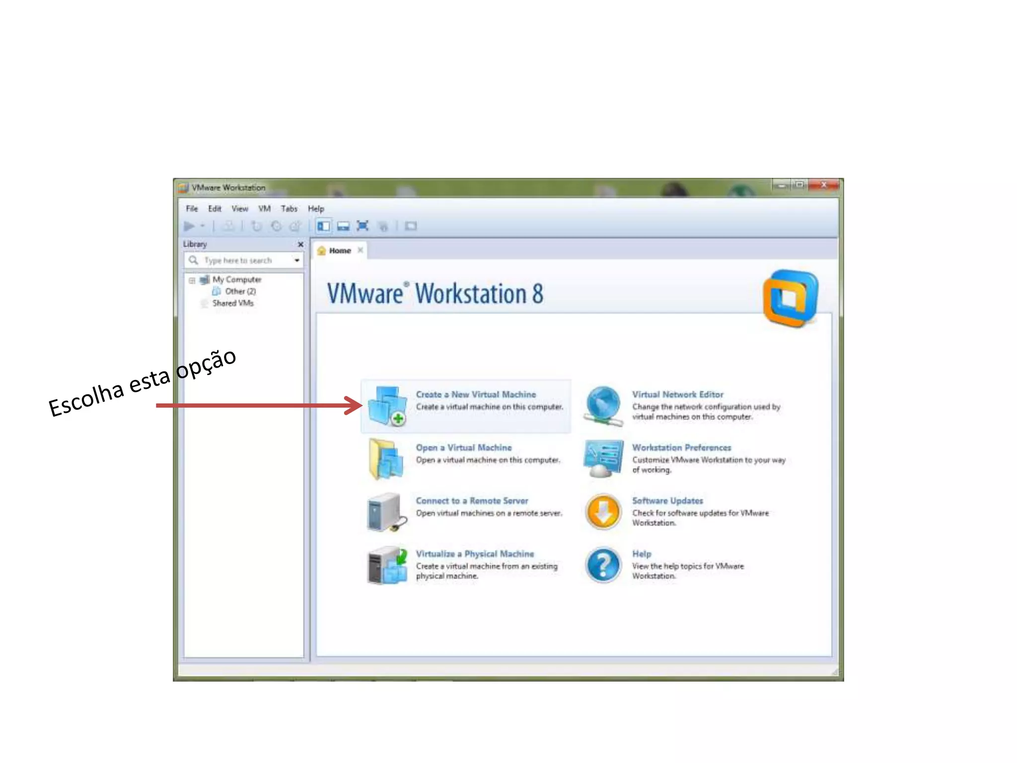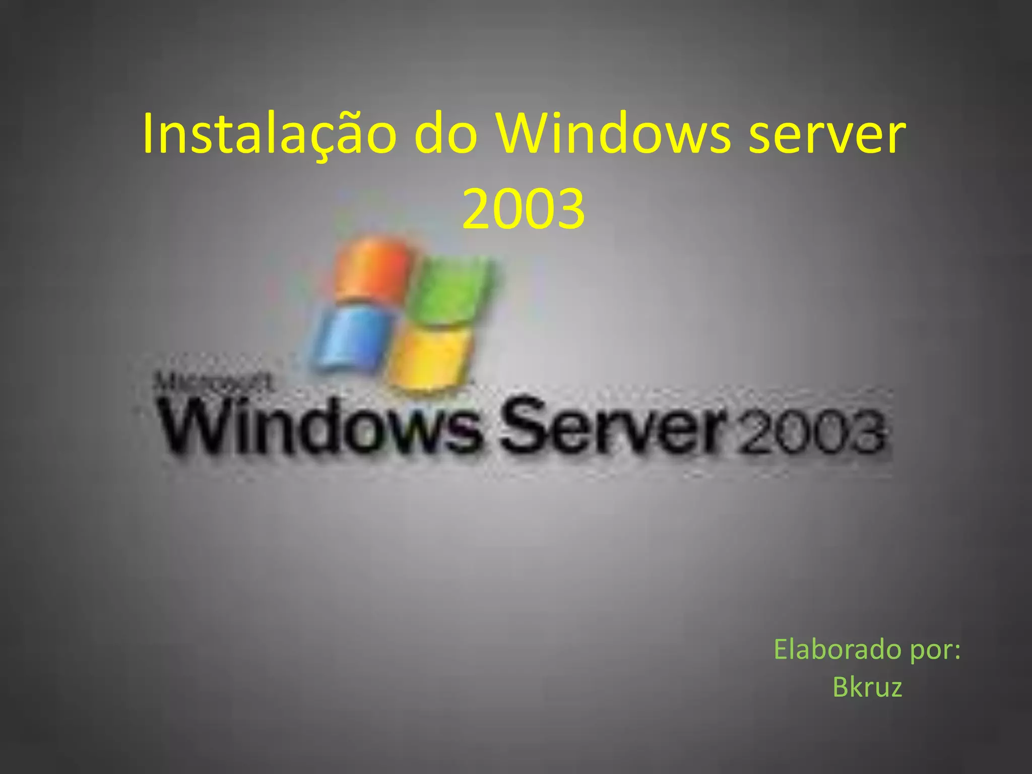 O documento fornece instruções passo-a-passo para instalar o Windows Server 2003 em uma máquina virtual, incluindo escolher o sistema operativo, definir o nome e tamanho da máquina virtual, formatar e particionar o disco, configurar nome e senha de administrador, e concluir a instalação.