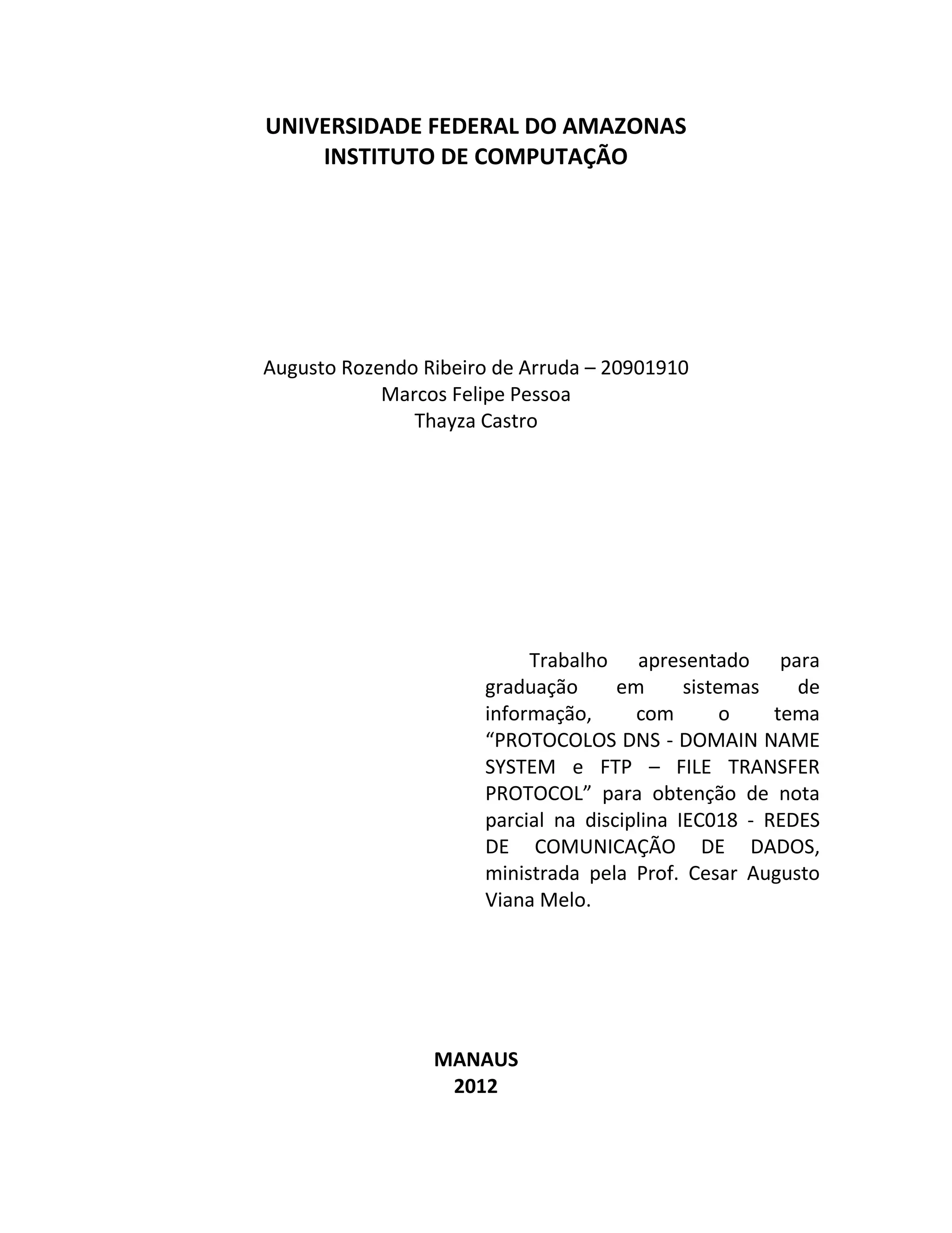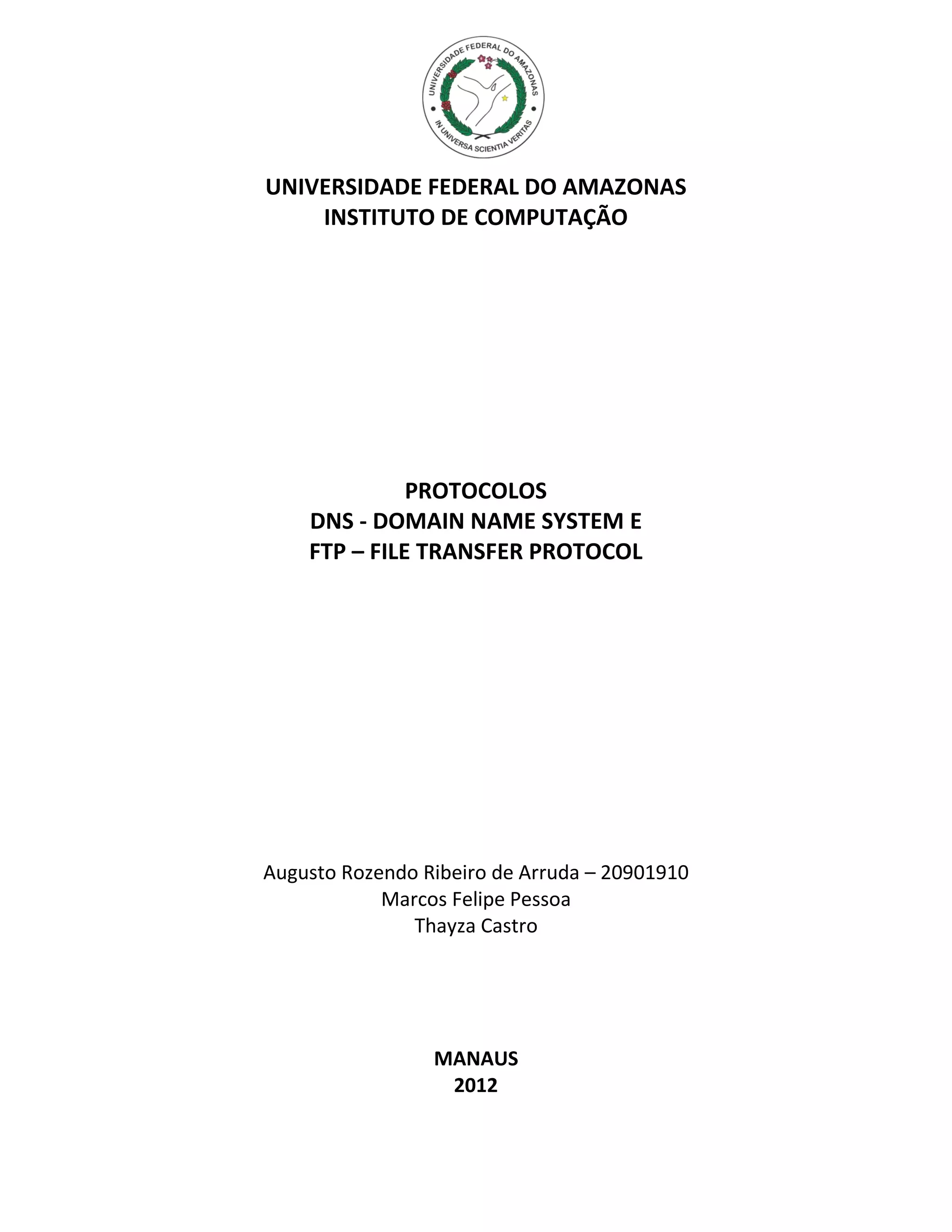 O documento discute dois importantes protocolos de rede: DNS e FTP. O DNS é responsável por mapear nomes de domínio para endereços IP, enquanto o FTP permite a transferência de arquivos entre computadores de forma remota. O documento apresenta experimentos práticos realizados com esses protocolos e ferramentas como BIND e Webmin.