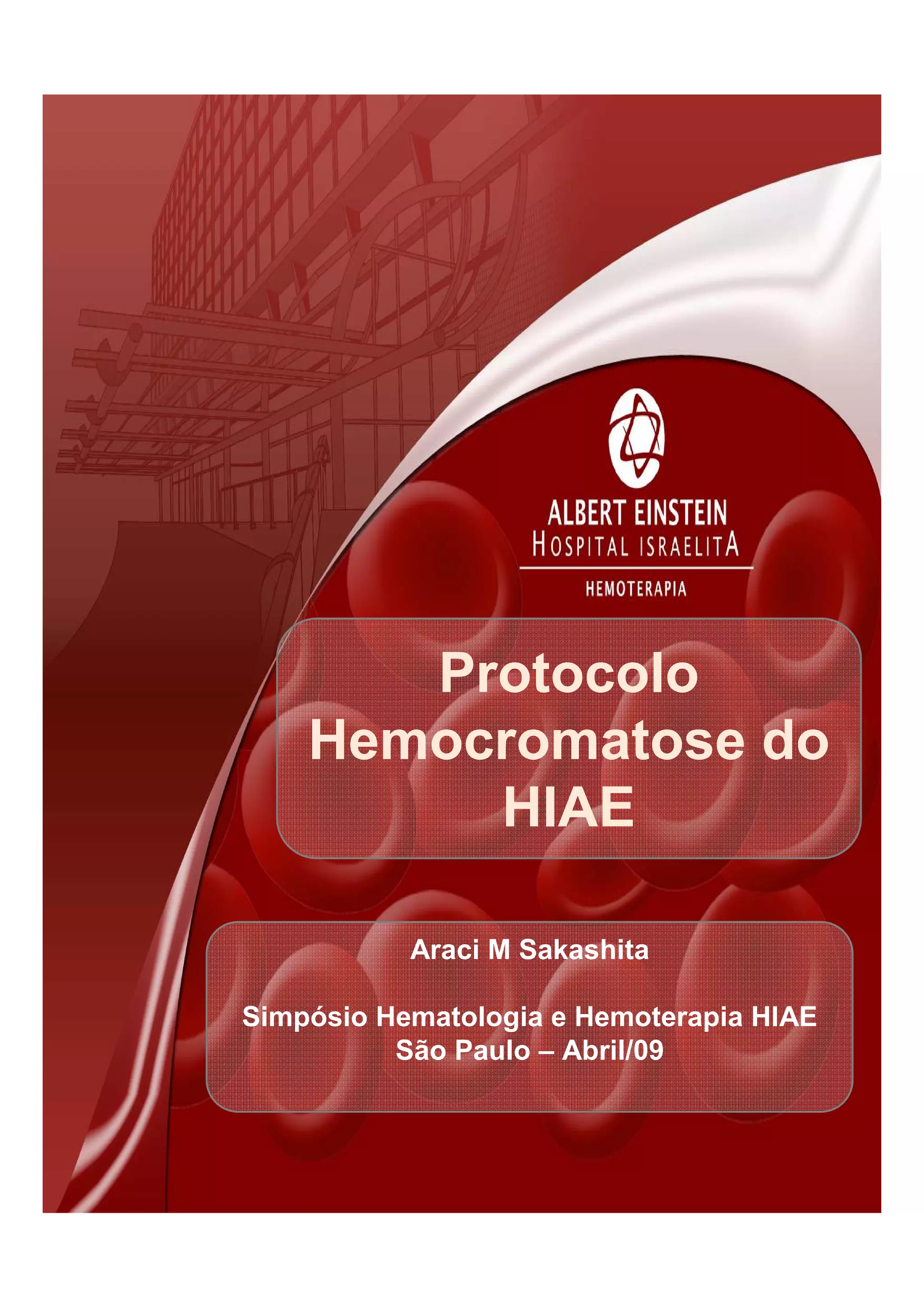 2) O protocolo para rastreamento e tratamento envolve testes genéticos e de saturação de ferro/ferritina para diagnóstico, seguido de sangrias regulares para remover o excesso de ferro e exames de acompanhamento.
