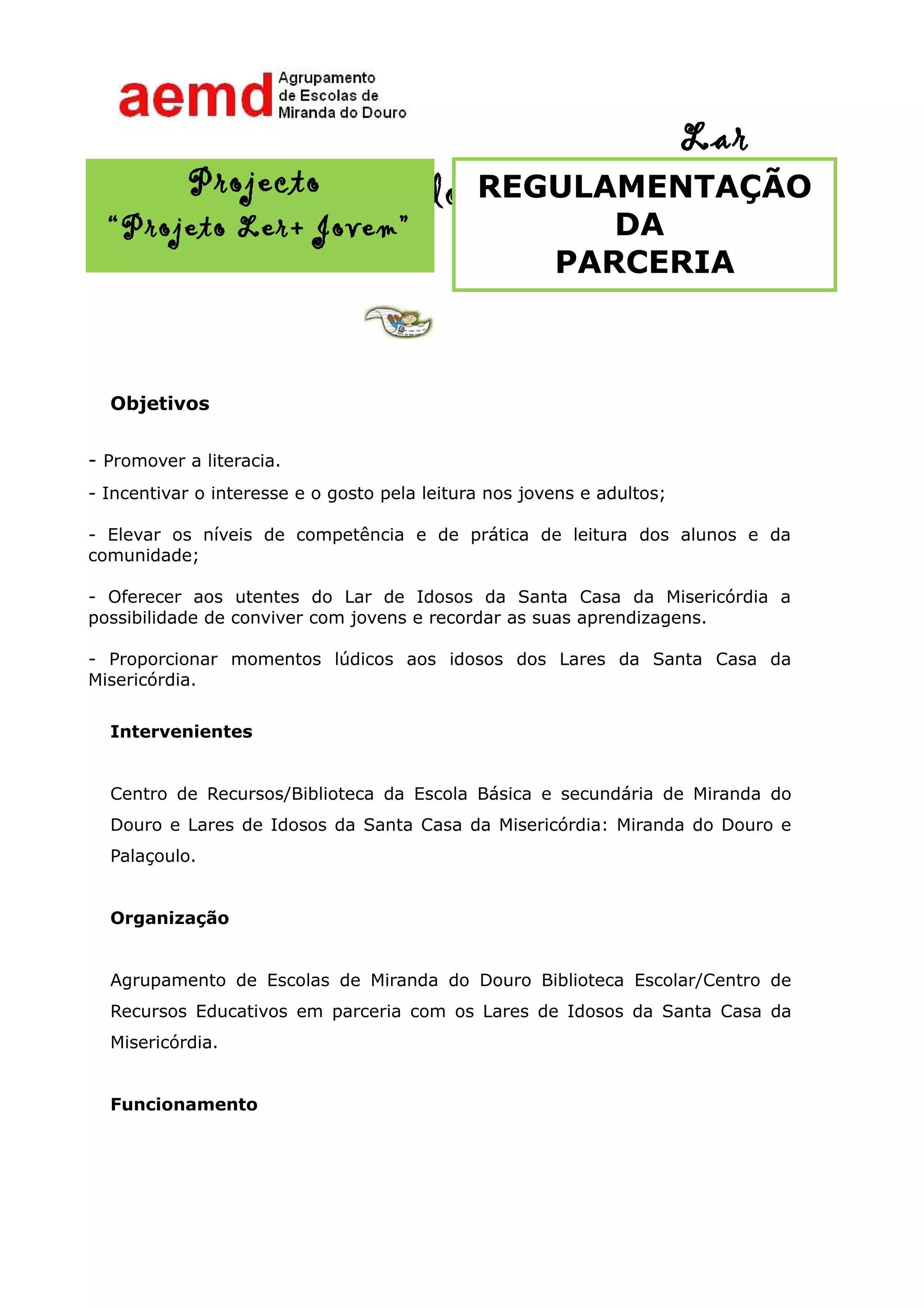 Este documento descreve um projeto entre uma escola e lares de idosos com os seguintes objetivos: promover a literacia, incentivar o interesse pela leitura, elevar competências de leitura e proporcionar momentos de convívio entre jovens e idosos. O projeto envolve alunos visitando os idosos para partilhar histórias e tradições e ler-lhes contos, decorrendo ao longo do ano letivo de 2012/2013.