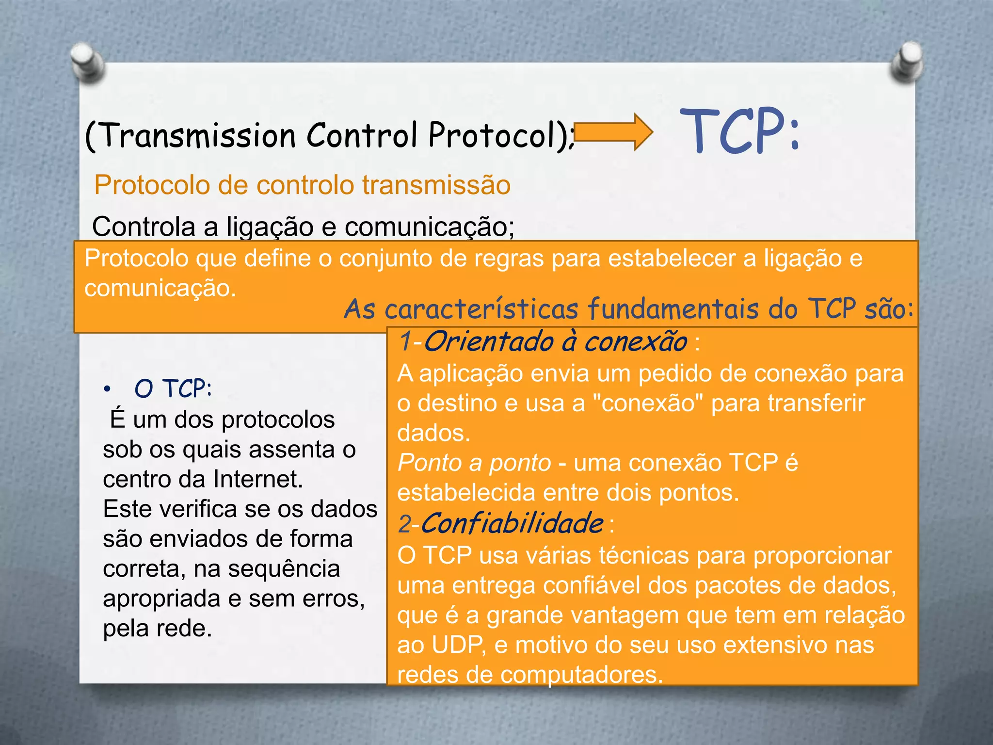 O TCP é um protocolo fundamental da Internet que fornece confiabilidade e orientação à conexão para a transferência de dados. Ele verifica que os dados são enviados corretamente e sem erros através da rede. Exemplos de aplicações que usam TCP incluem jogos, ferramentas de rede e o prompt de comando.