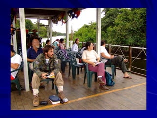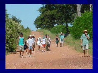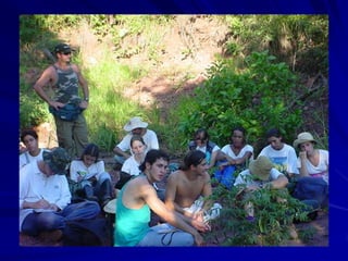 O documento descreve protocolos para realizar levantamentos ecológicos de populações utilizando os métodos de ponto fixo, transectos lineares e coleta de formigas. Inclui instruções sobre como realizar observações nos pontos fixos, ao longo de transectos a pé ou motorizados, e coletar formigas usando iscas. O objetivo é comparar os diferentes métodos e avaliar suas vantagens e desvantagens.