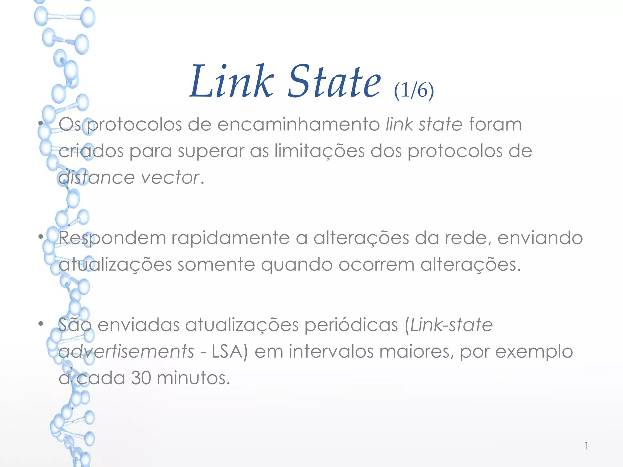 Os protocolos de encaminhamento link state foram criados para superar as limitações dos protocolos de distance vector. Os protocolos link state mantêm uma base de dados completa da topologia da rede e cada roteador calcula as rotas usando o algoritmo SPF.